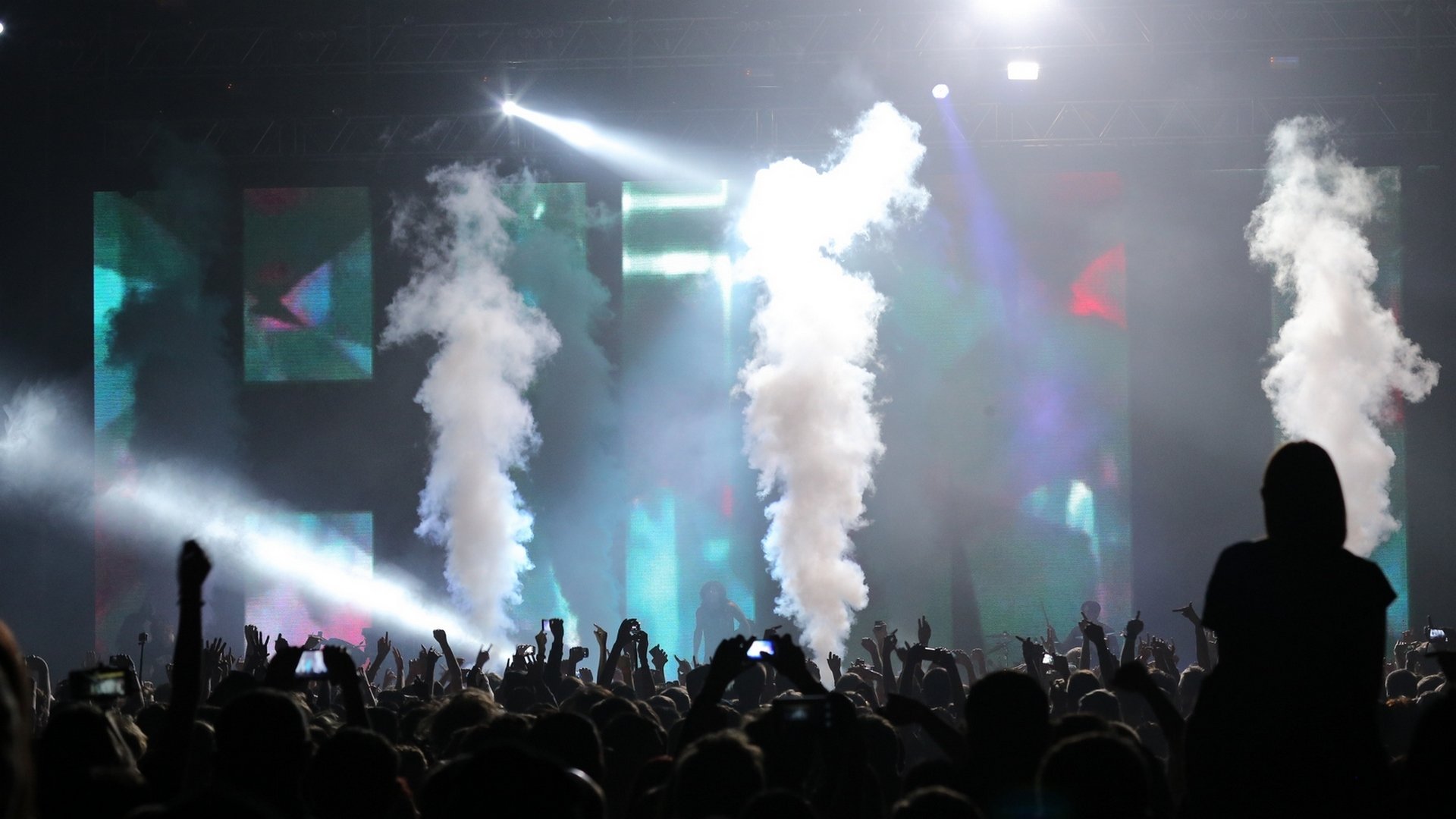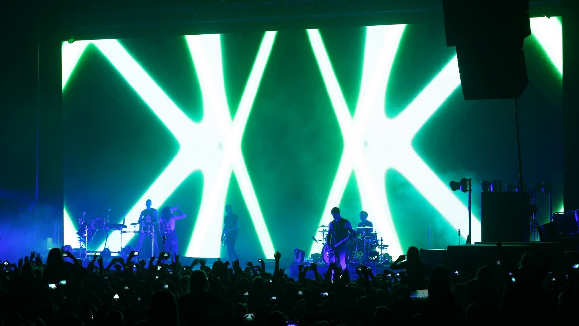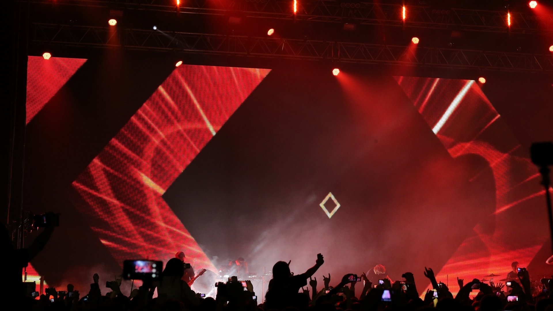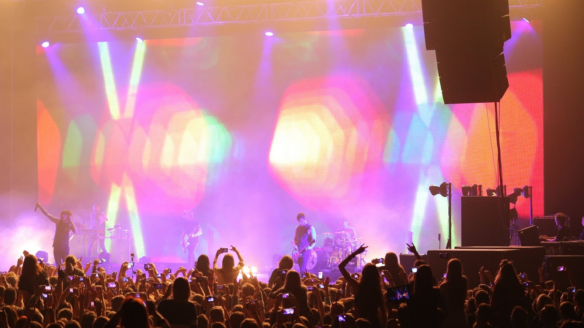 Kyiv, Ukraine. The British bands Bring Me The Horizon show was held on stage of the Palace of sports. This is first visit to Ukraine of the band which occupied top level of Kerrang Awards this year. General technical supplier of show was Zinteco company.